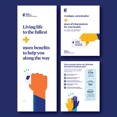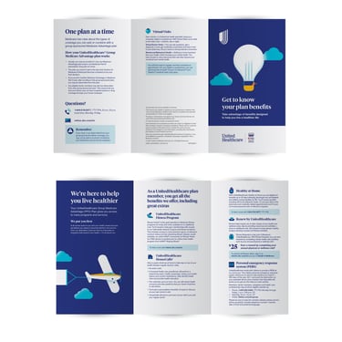 As a graphic designer at catchfire, I collaborated with cross-functional teams to create and produce print and web materials for multiple UnitedHealthcare campaigns over six years. Designed a wide range of assets including graphics, magazines, brochures and 100+ page booklets. While applying established brand identity systems to deliver visually engaging on-brand solutions. Provided end-to-end design support across print and digital platforms, ensuring consistency and driving meaningful client results.